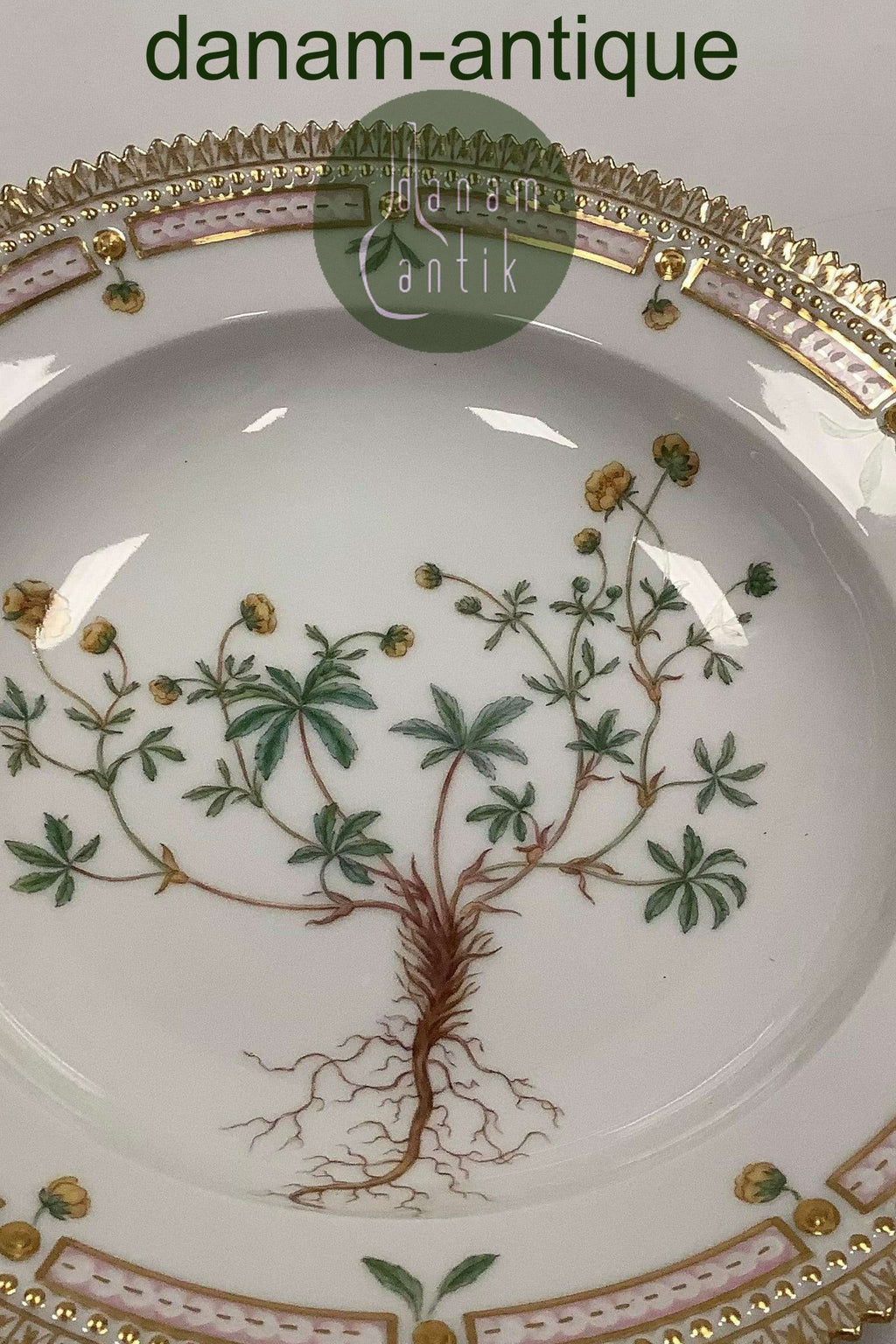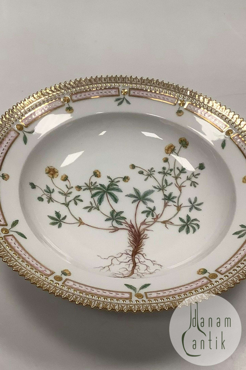 Royal Copenhagen Flora Danica Deep Plate No 20/3546 or 604. Latin name: Potentilla apaca L