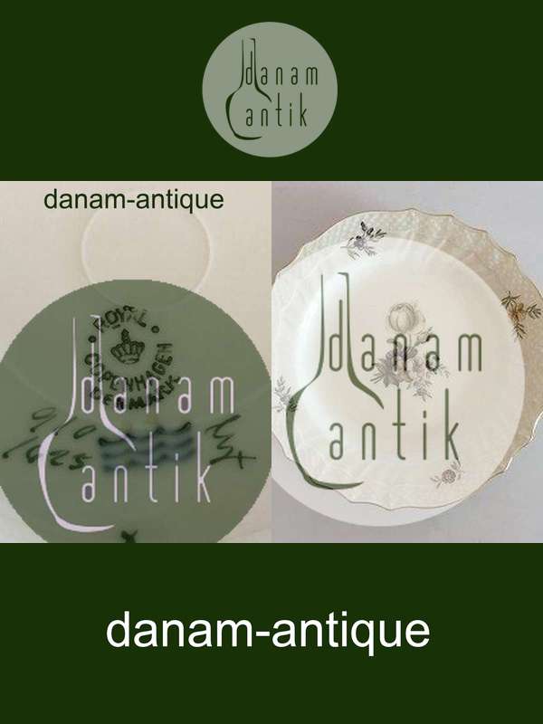 Royal Copenhagen Frijsenborg Cake Plate No 1625. 17 cm (6 11/16"). Creme colored with flower motifs and gold named after the Danish noble county of Frijsenborg,