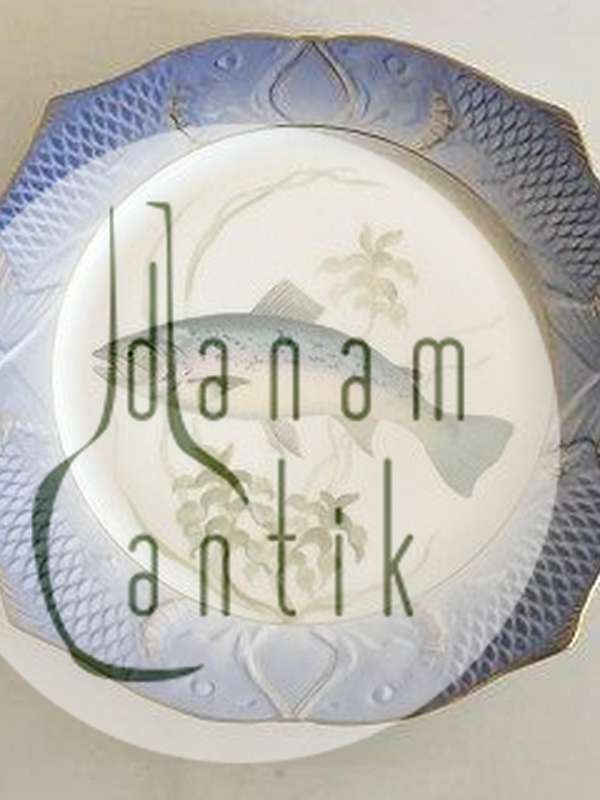 Royal Copenhagen Blue Fisk Plate with Gold No 1212/3002 with Salmo Trutta. 22.5 cm (8 55/64")