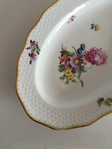 Royal Copenhagen Oval Platter with Flowers and Beehive Ornamented Border. 26.5 cm (10 7/16") From 1870-1880.