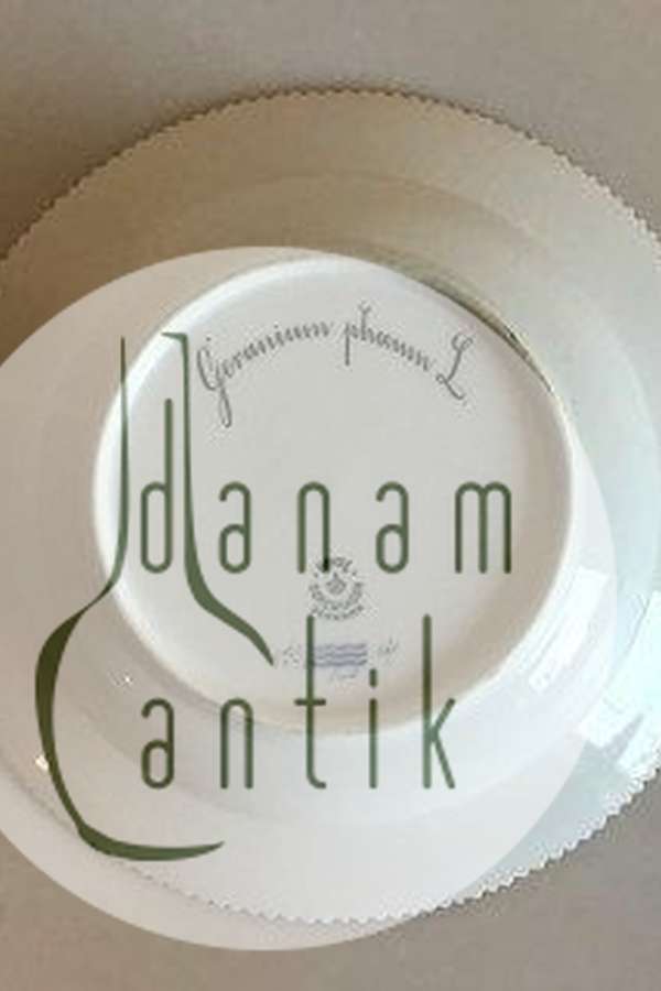 Royal Copenhagen Flora Danica Deep Plate No 20/3546. Latin name: Geranium phaum L. Measures 22.3 cm / 8 25/32 in.