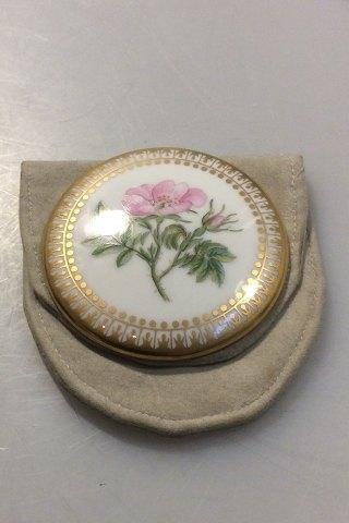 Royal Copenhagen Flora Danica Little Pocket Mirror. 6.5 cm dia (2 9/16"). Comes in a little grey suede container.