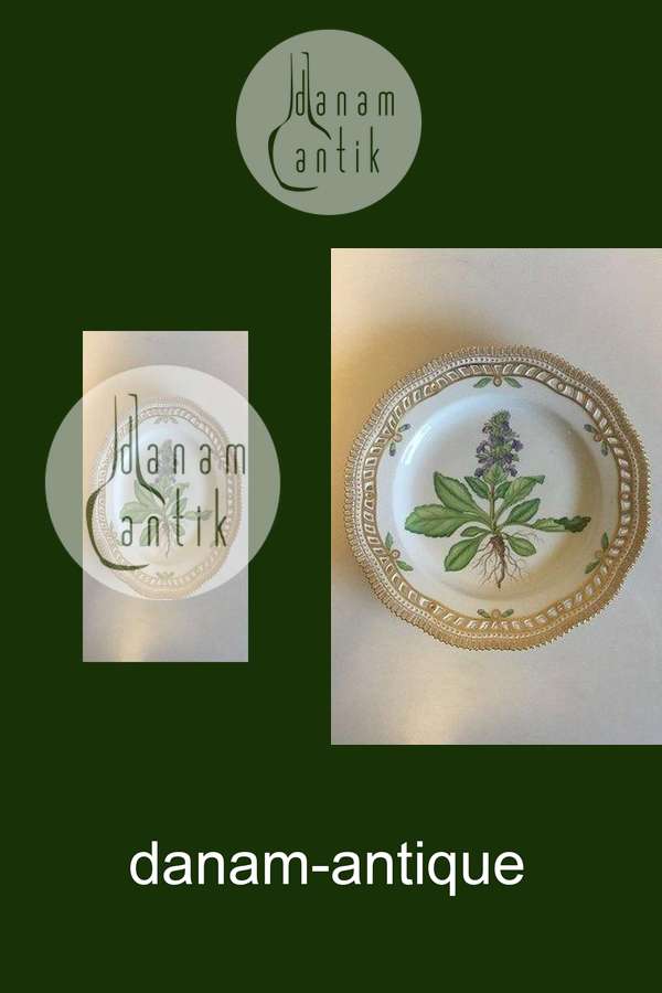Royal Copenhagen Flora Danica Plate with pierced border No 20/3553. Latin name: Ajuga genevensis L. Måler 25.5 cm / 10 3/64 in.