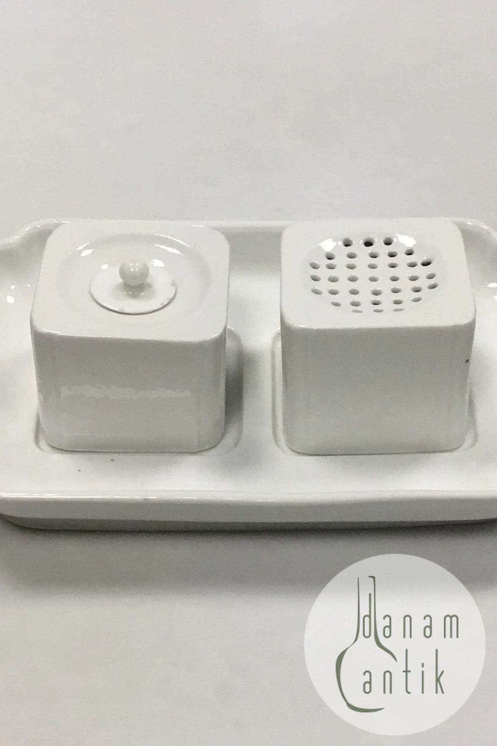 Royal Copenhagen Old Ink Well in white porcelain. Measures 22 cm x 15 cm (8 21/32 in. X 5 29/32 in.). Some small chips on the lid