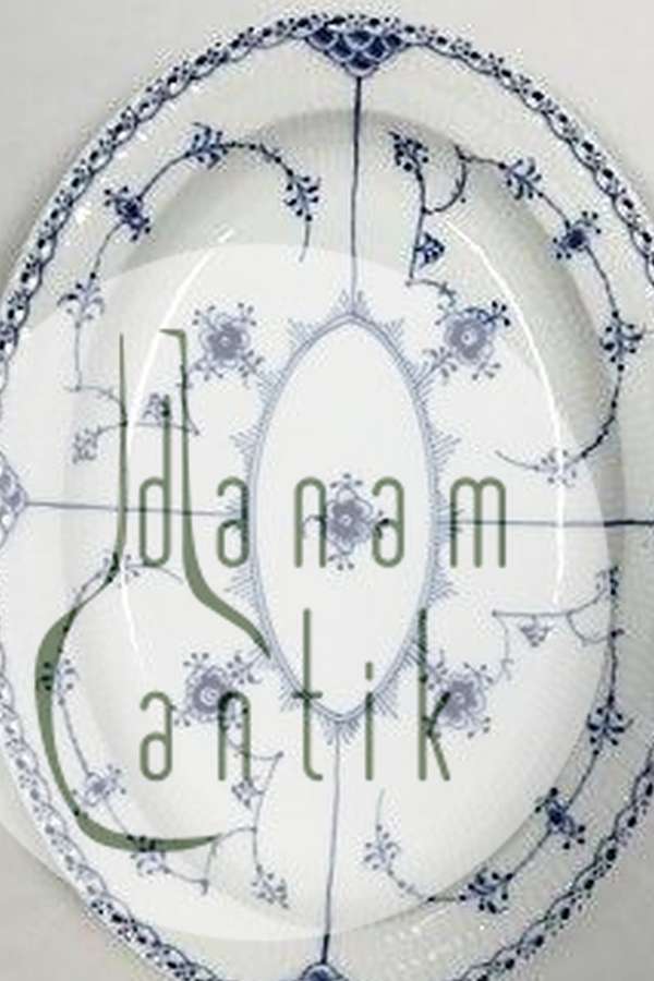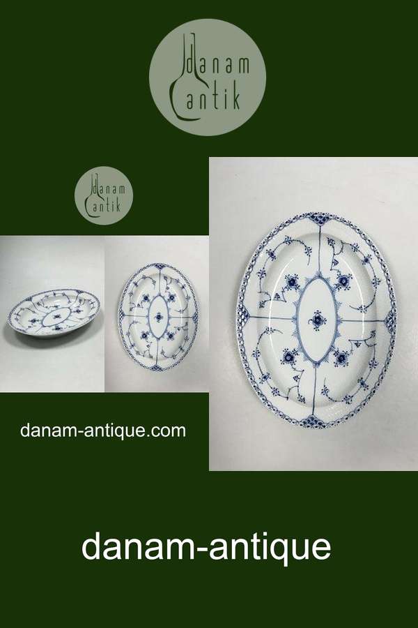 Royal Copenhagen Blue Fluted Half Lace Oval Serving Dish No 628. 1st Quality. Measures 34 cm / 13 25/64 in. x 25 cm / 9 27/32 in.