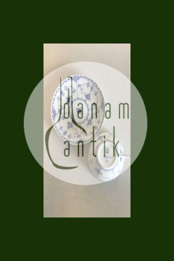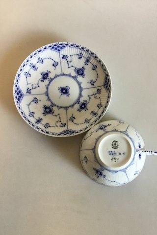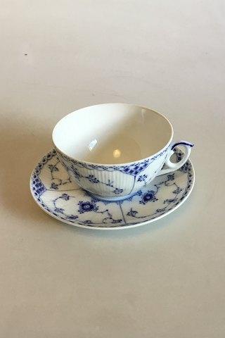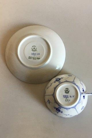 Royal Copenhagen Blue Fluted Half Lace Large Tea Cup No 524. Measures Cup: 6.3 cm / 2 31/64 in. x 11.3 cm / 4 29/64 in. dia. Saucer: 16.5 cm / 6 1/2 in.