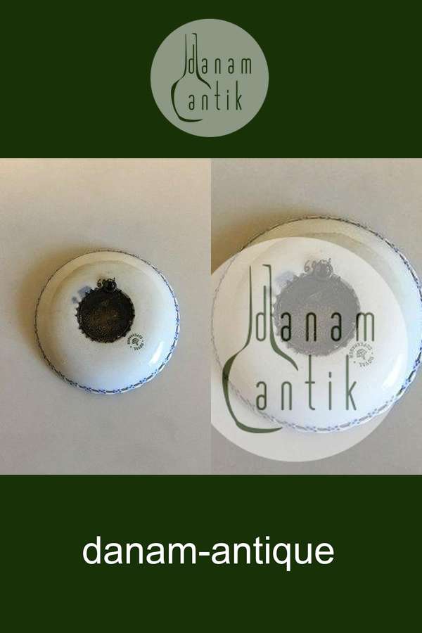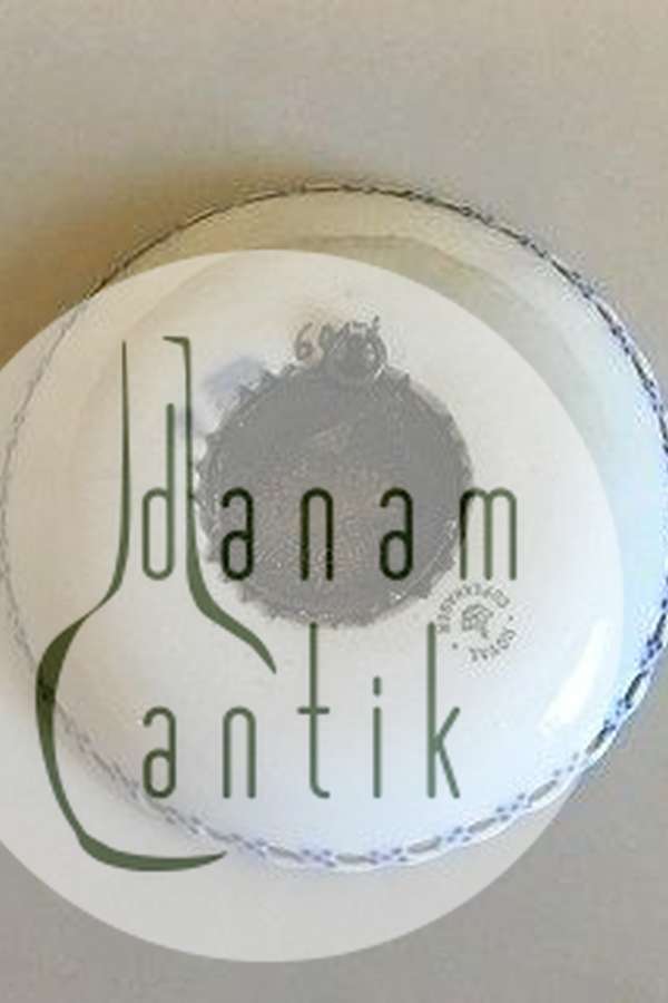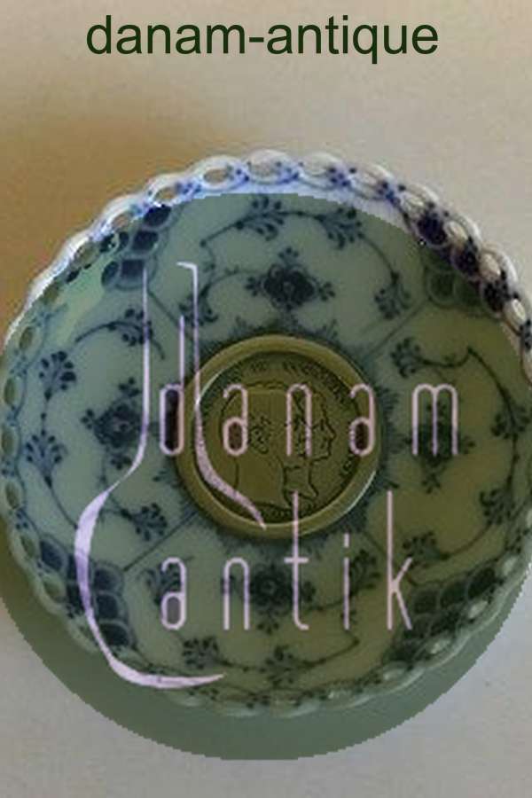 Royal Copenhagen Blue Fluted Full Lace Candle Drip Cup with 2-Crown coin with Christian IX and Queen Louise, 1892. No 1009. Measures 9.4 cm / 3 45/64 in.