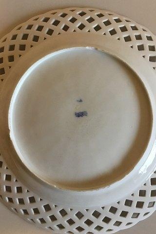 Royal Copenhagen Blue Fluted Full Lace Plate with open-work border. Measures 25.7 cm / 10 1/8 in. With chipping on the backside.