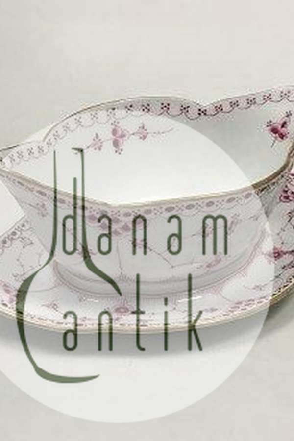 Royal Copenhagen Blue Fluted Red Ruby/Pink with Gold Edge Half Lace Sauce Boat No 2/587. Measures 23 cm / 9 1/16 in.