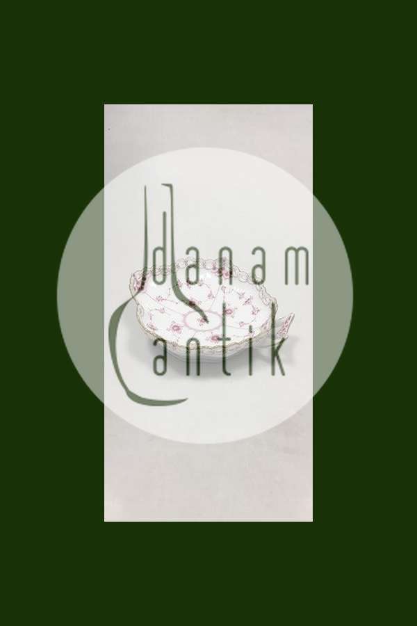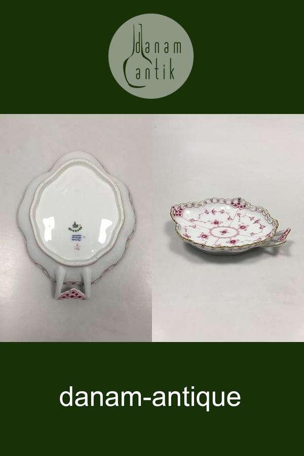 Royal Copenhagen Blue Fluted Red Ruby/Pink with Gold Edge Full Lace Assiet No 2/1076. Measures 17.8 cm / 7 1/64 in.