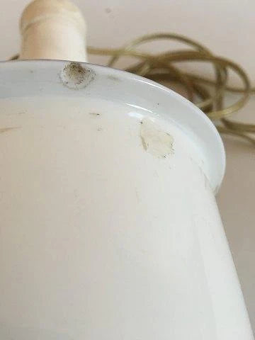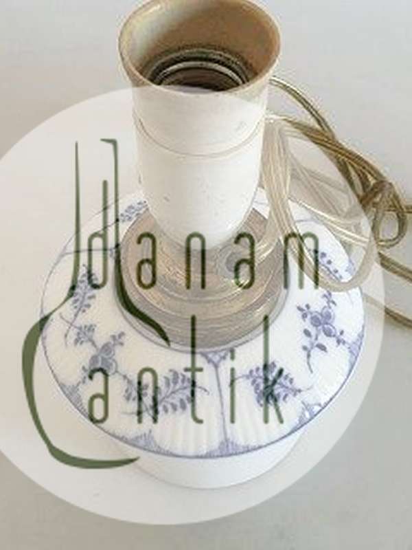 Royal Copenhagen Blue Fluted Plain Lamp Top. The tops widest circuit is 35.5 cm (13 31/32"). The top has a chip in it as shown on picture, but you can not see the chip when the lamp is placed in the right lamp holder.