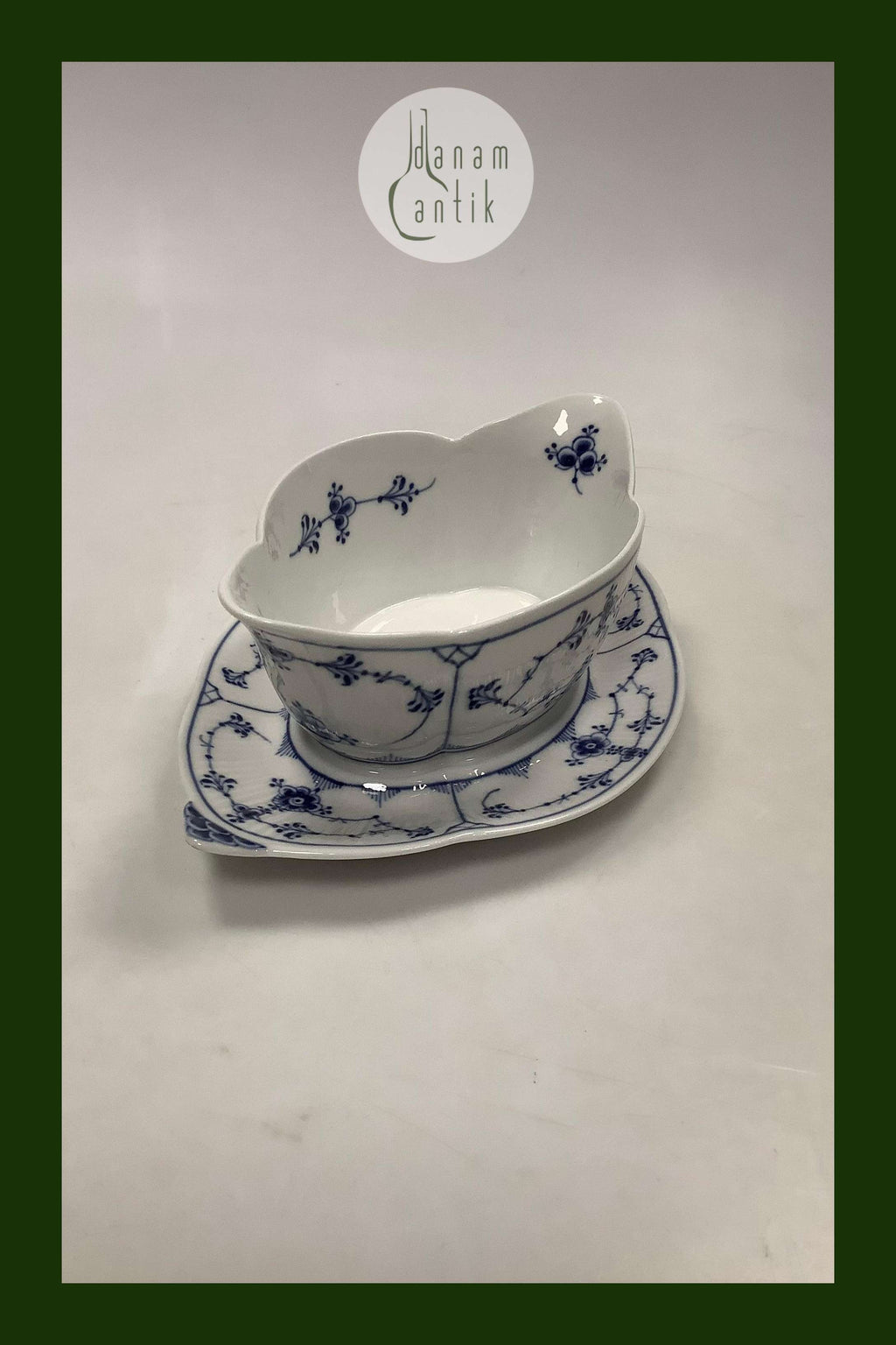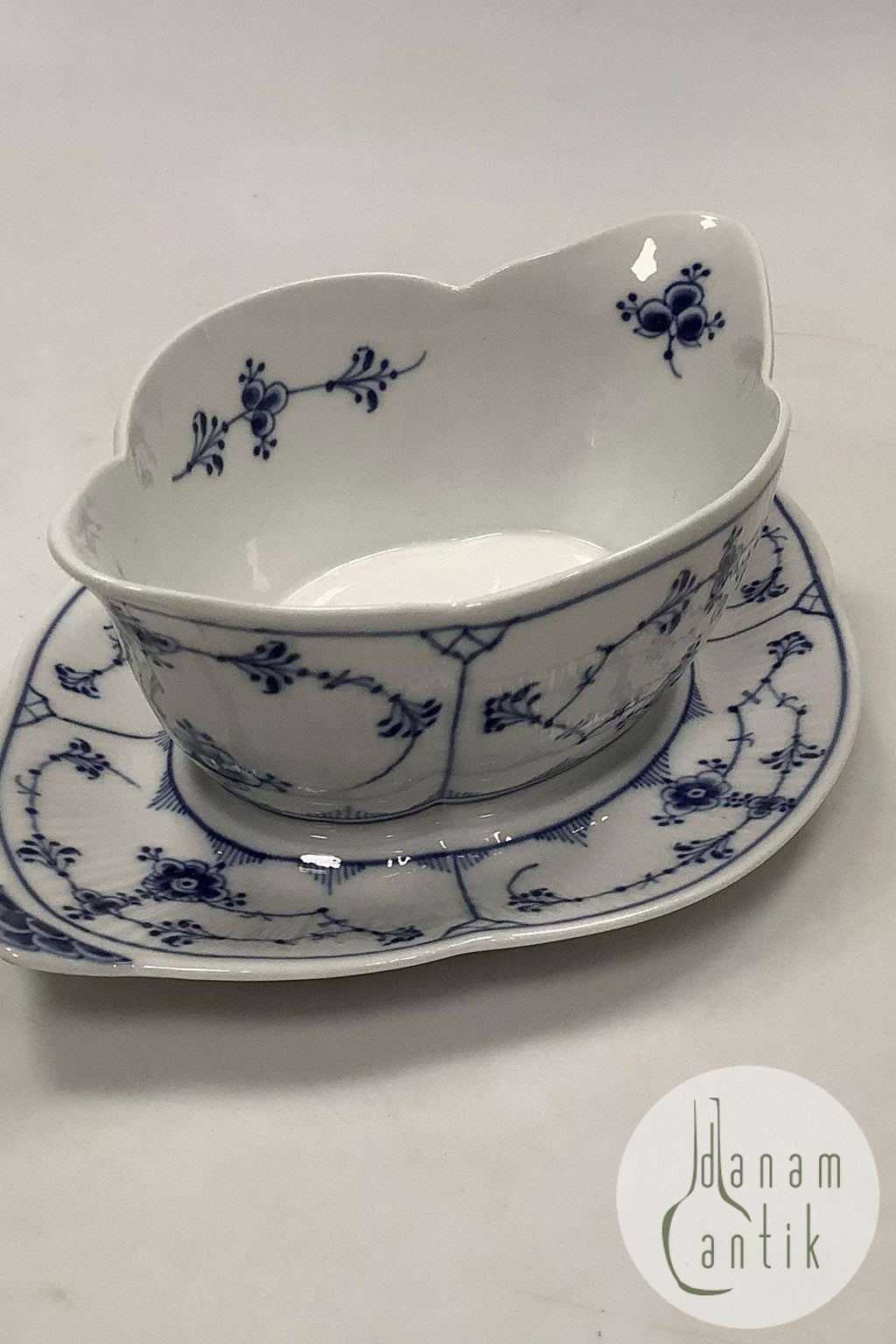 Royal Copenhagen Blue Fluted Plain Gravy Boat No. 204. Measures 24.5 cm / 9.65 in. and is in good condition.