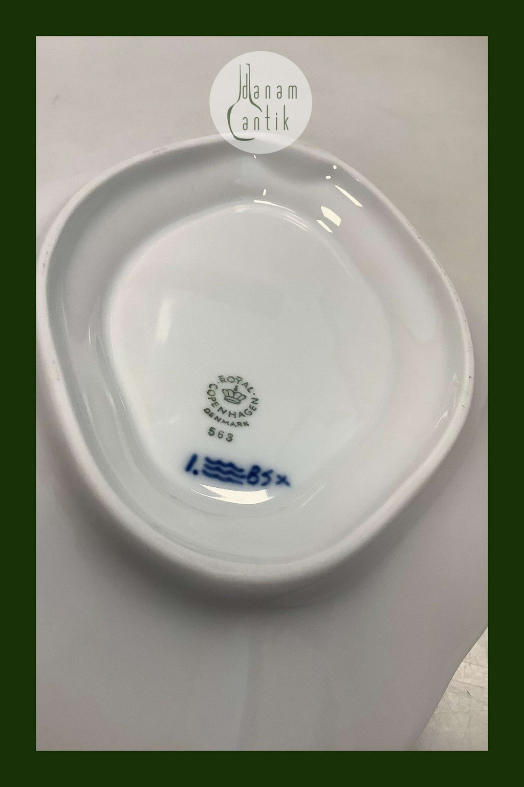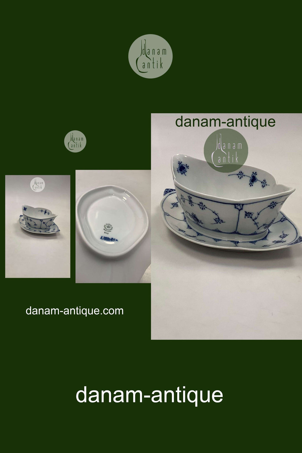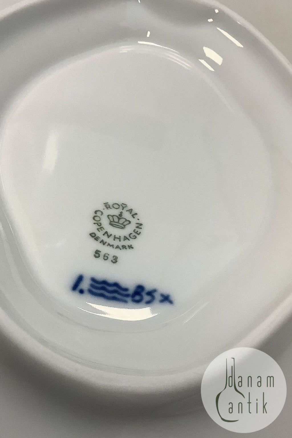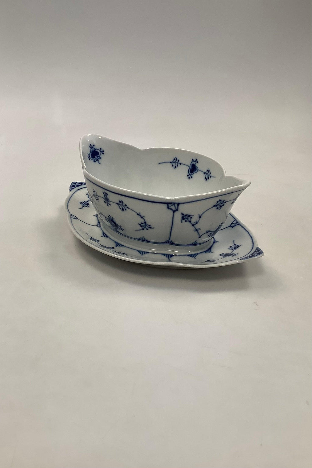 Royal Copenhagen Blue Fluted Plain Gravy Boat No 563 / 204 attached to saucer.