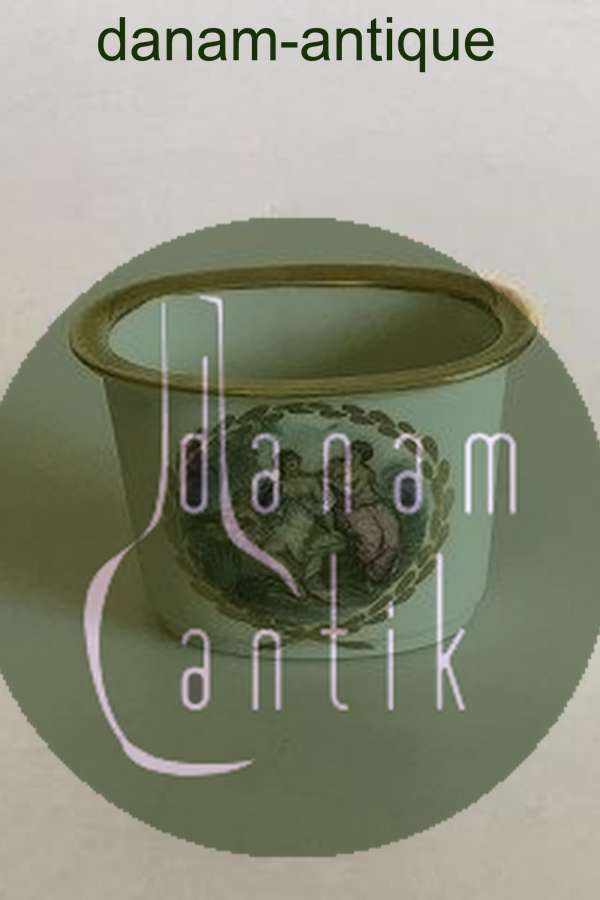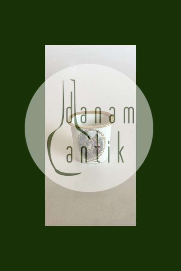 Royal Copenhagen Mythological Decoration with Cupid Cigarette Cup/Toothpick Holder. Measures 7.8 cm / 3 5/64 in. x 4.8 cm / 1 57/64 in. x 5.8 cm / 2 9/32 in.