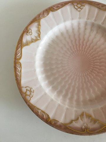 Royal Copenhagen Pale Pink Plate with Gold Ornament (Bat Pattern). 19.5 cm (7 43/64"). The rose color varies from plate to plate (test glace). All in good whole condition, with some wear to the gold.