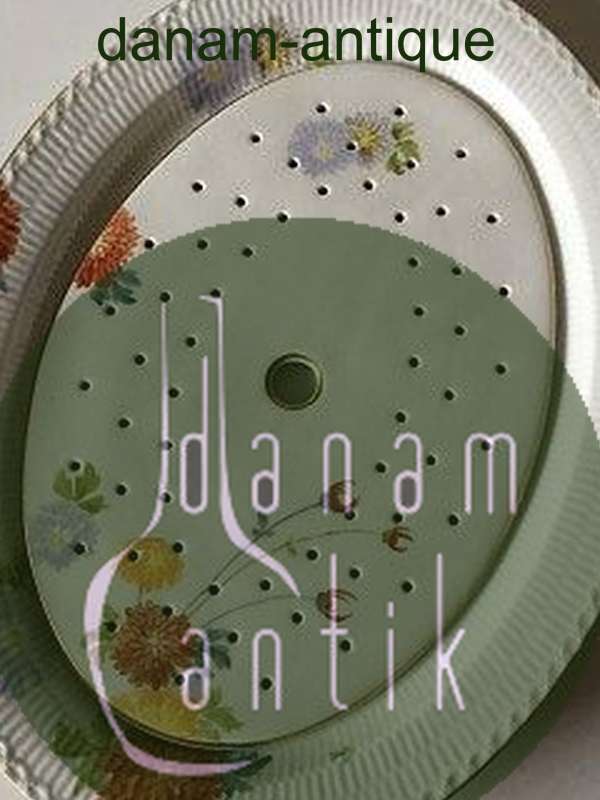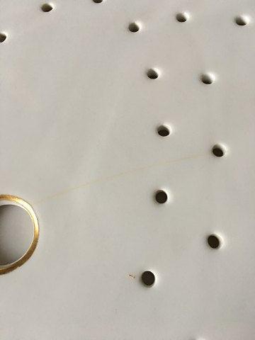 Royal Copenhagen No 93 White with Flowers and Gold Fish Grate 37 cm (14 9/16"). Fits the oval serving platter 47 cm. Has a hairline crack. Rare dinner service from 1894-1898. Handpainted