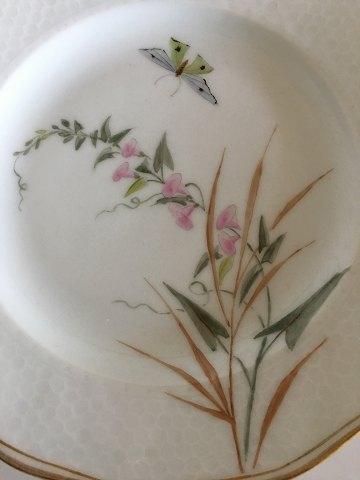 Royal Copenhagen Plate No 166/2031 with Handpainted Flower and Butterfly. 21 cm (8 17/64"). In nice whole condition, with some wear to the gold