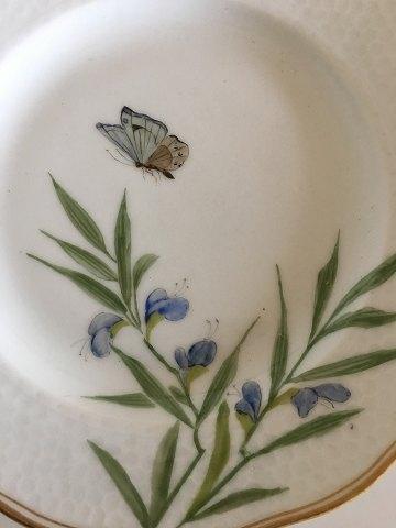Royal Copenhagen Plate No 166/2031 with Handpainted Flower and Butterfly. 21 cm (8 17/64"). In nice whole condition, with some minor wear to the gold