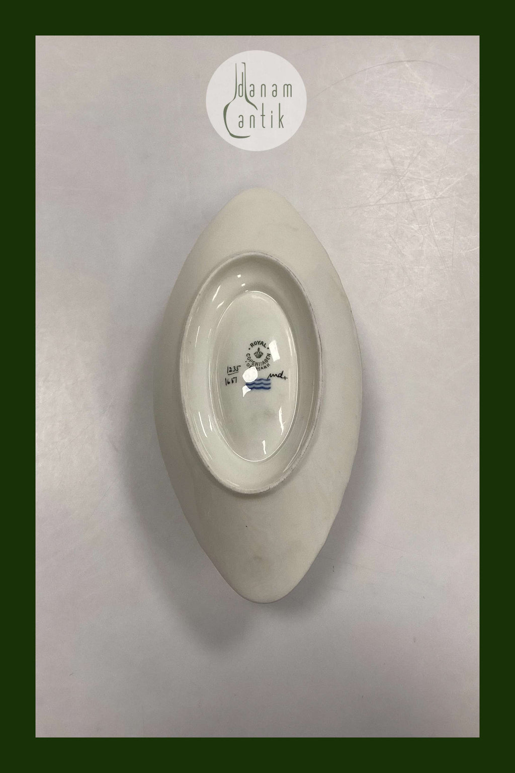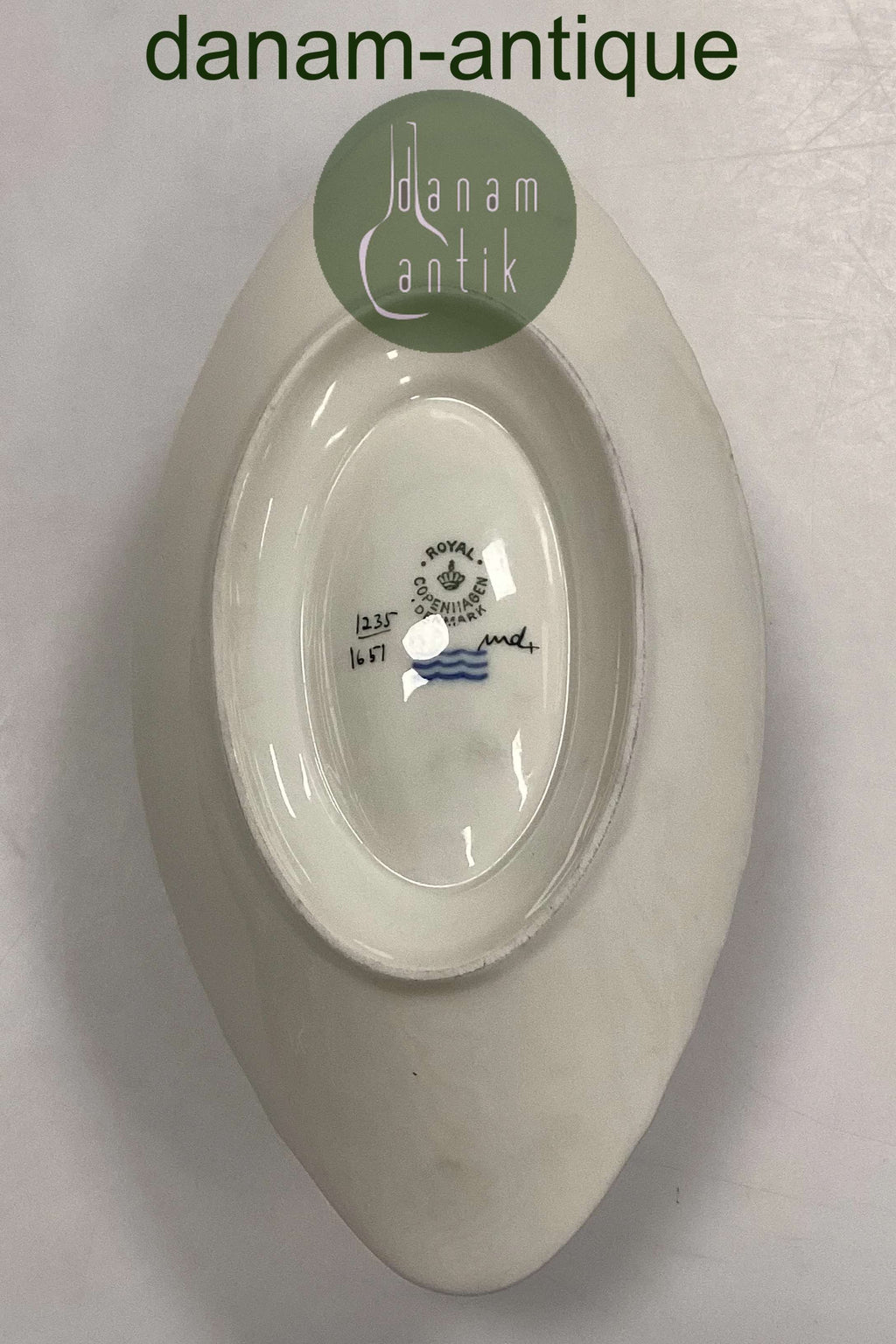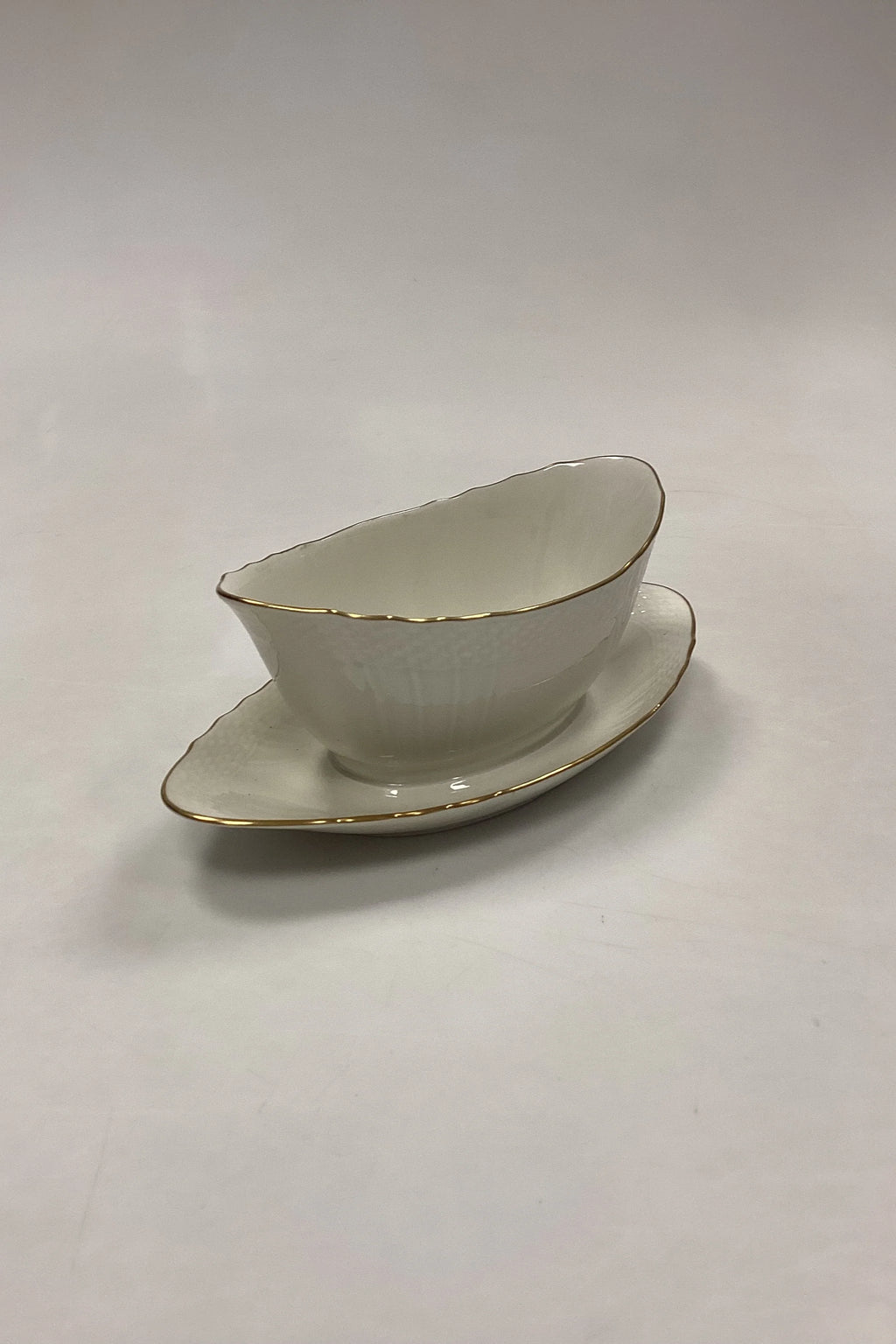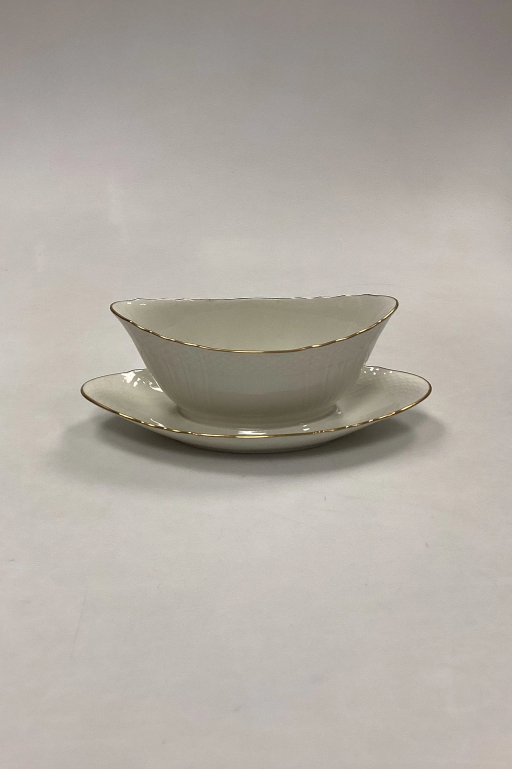 Royal Copenhagen Creme Curved with Gold (Set 1235) Saucer No. 1651. Measures 17,5 cm x 9,3 cm / 6,88 in. x 3,66 in. Fixed saucer measures 22 cm / 8,66 in.