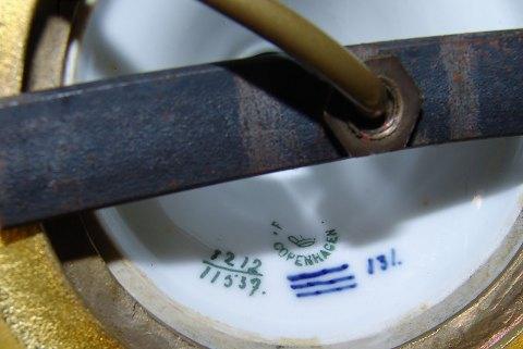 Royal Copenhagen Blue Fan Table Lamp with Bronze Mounting No 1212/11537. Measures 40,5cm and is in perfect condition. With ram heads on the side