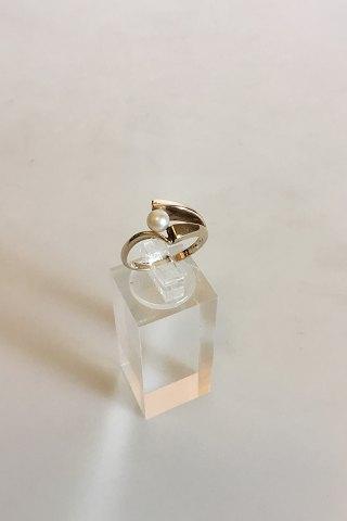 Gold ring with Pearl in 14K Ring Size 54 / US 7 1/4. Weighs 2.44 g / 0.085 oz. Vaguely stamped