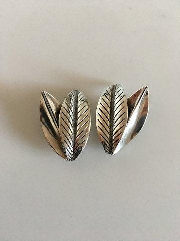 Anton Michelsen Leaf Shaped Sterling Silver Earclips. Measures 3 cm / 1 3/16". Combined weight of 9 g / 0.30 oz.