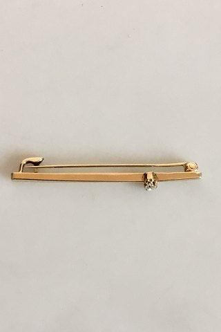 Brooch in 14K. Gold with Brilliant. Measures 4.8 cm / 1 57/64 in. Weighs 2.48 g / 0.09 oz.