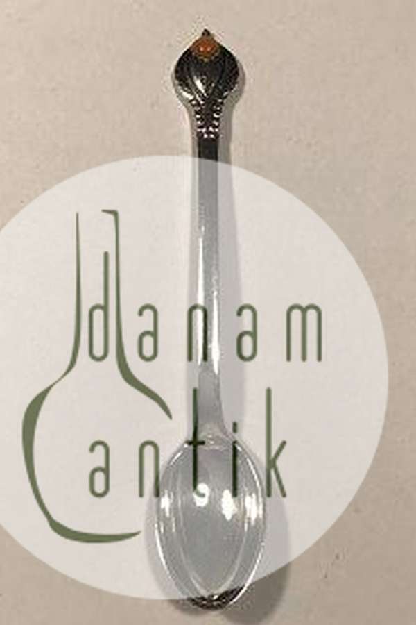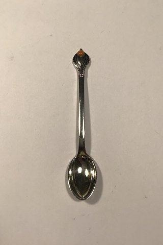 Evald Nielsen Silver Coffee Spoon No 3. Measures 11,3cm. Decorated with amber stone