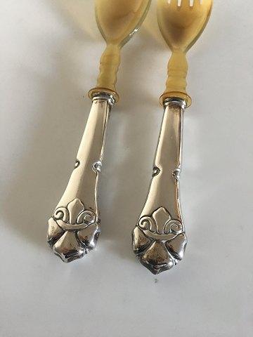 Fransk Lilly Salad Serving Set in Silver and Horn O.V. Mogensen