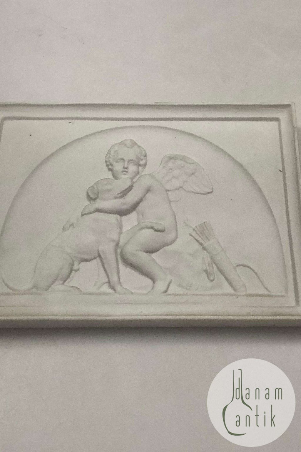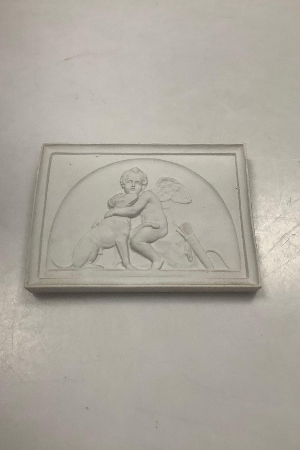 Bing and Grondahl Biscuit Plate Cupid caressing the faithful dog No 72. Copy from 1855 after Thorvaldsen's original from Rome 1831. Measures 13 x 9,5cm (5.11 x 74 inch).