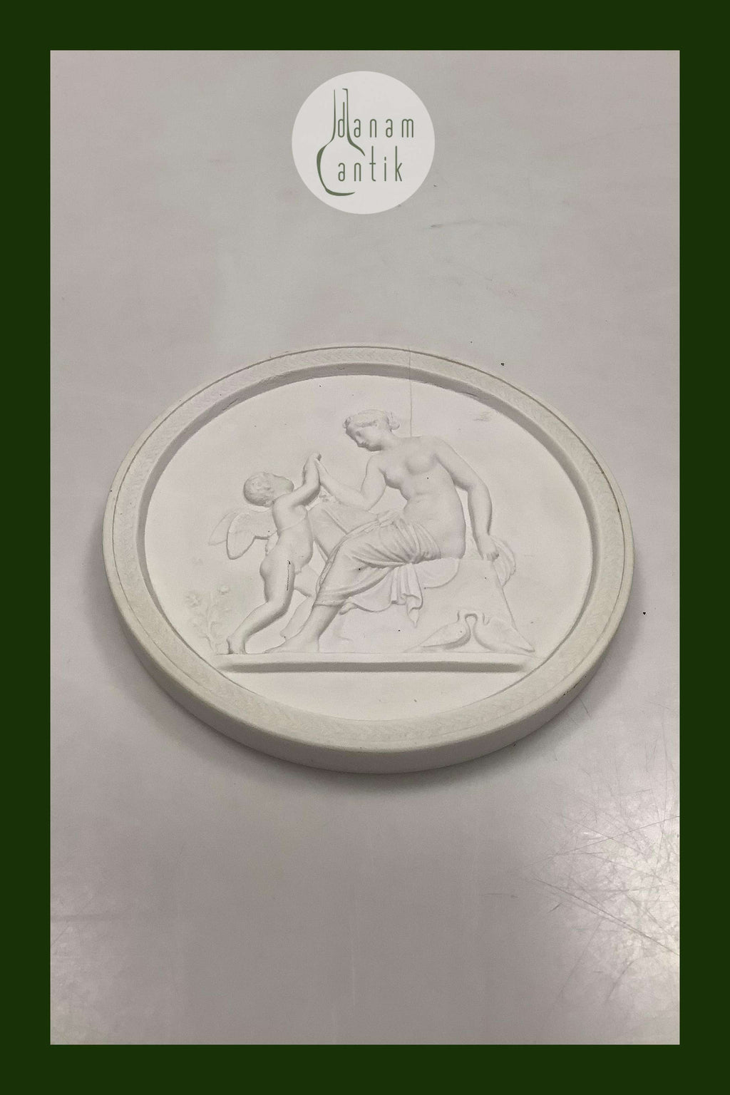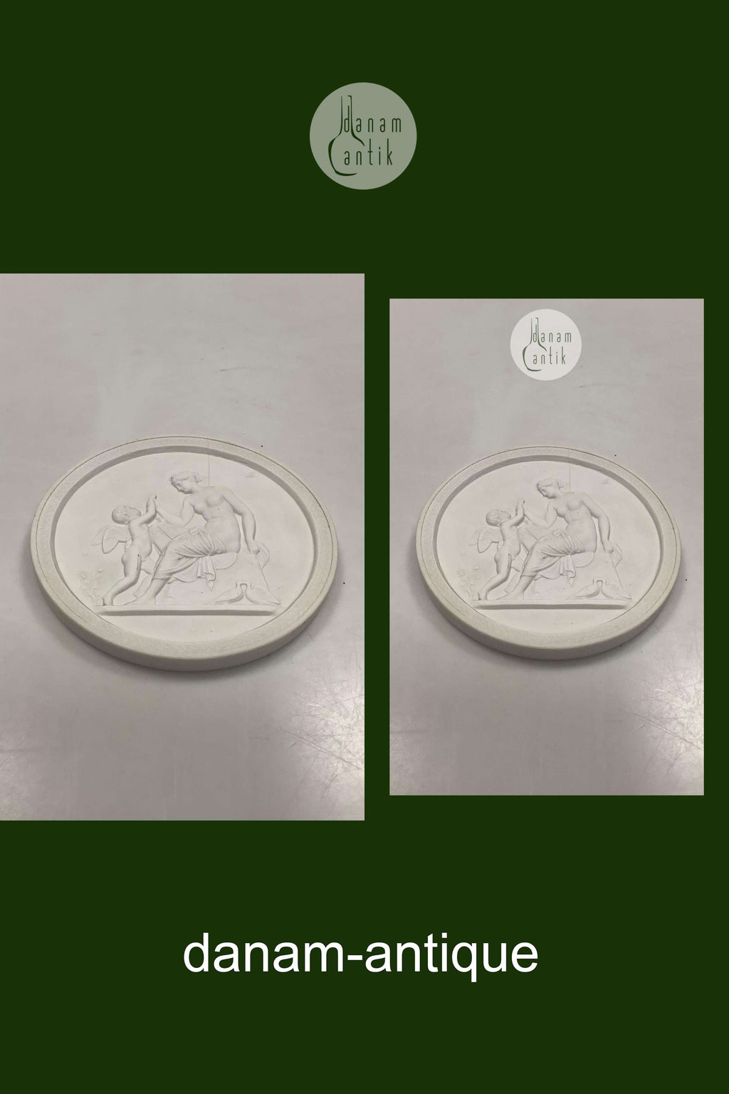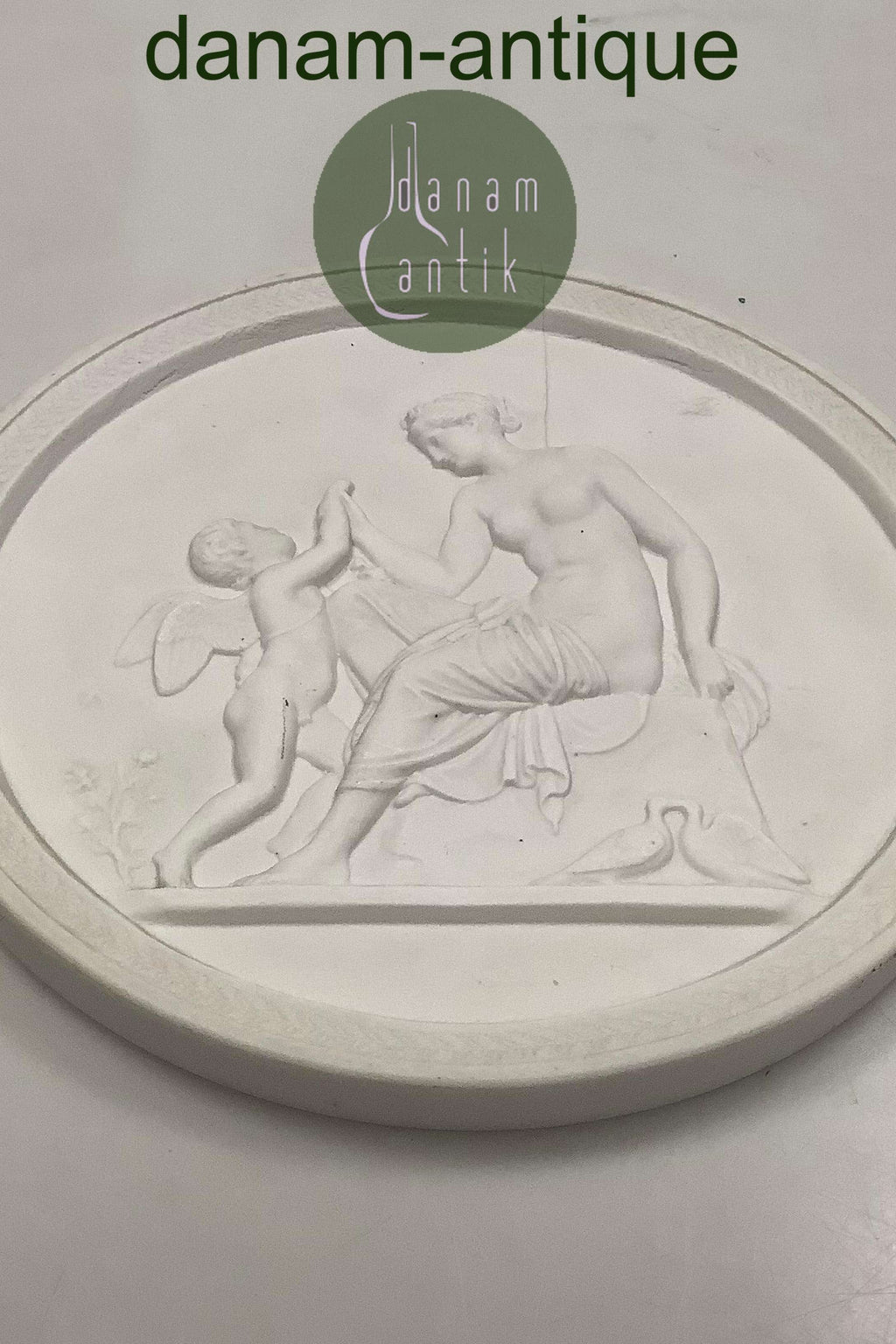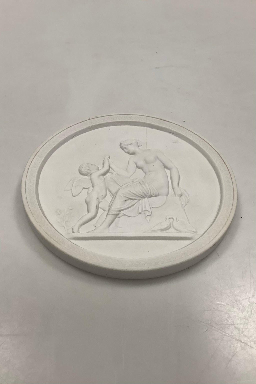 Royal Copenhagen Biscuit Plate Cupid complains to Venus about the sting of a bee No 84. Copy of O.H.B. Olrik from 1849 after Thorvaldsen's original from Rome 1809. Measures 14 cm / 5.51 inch
