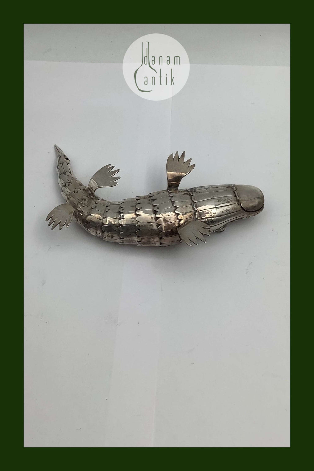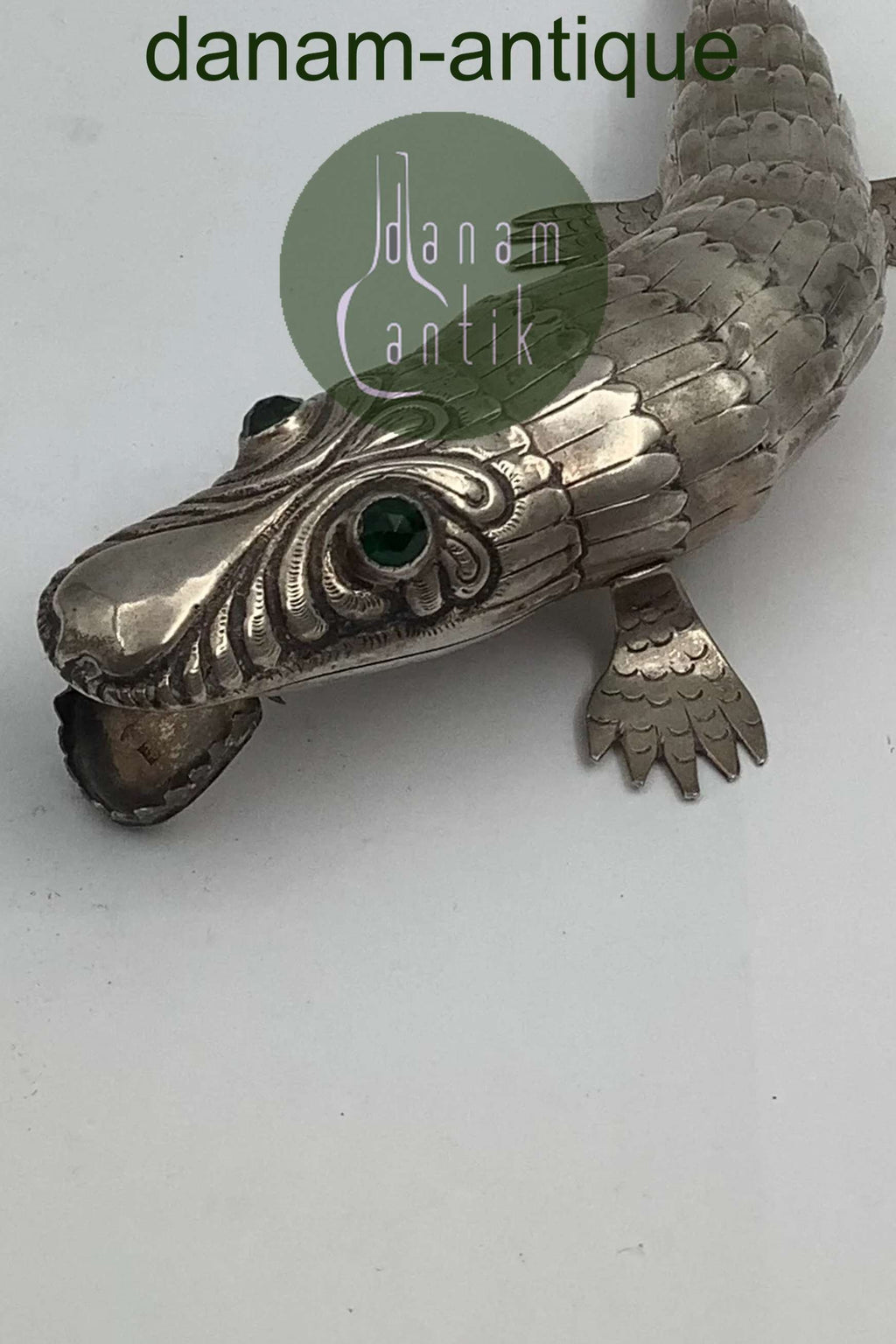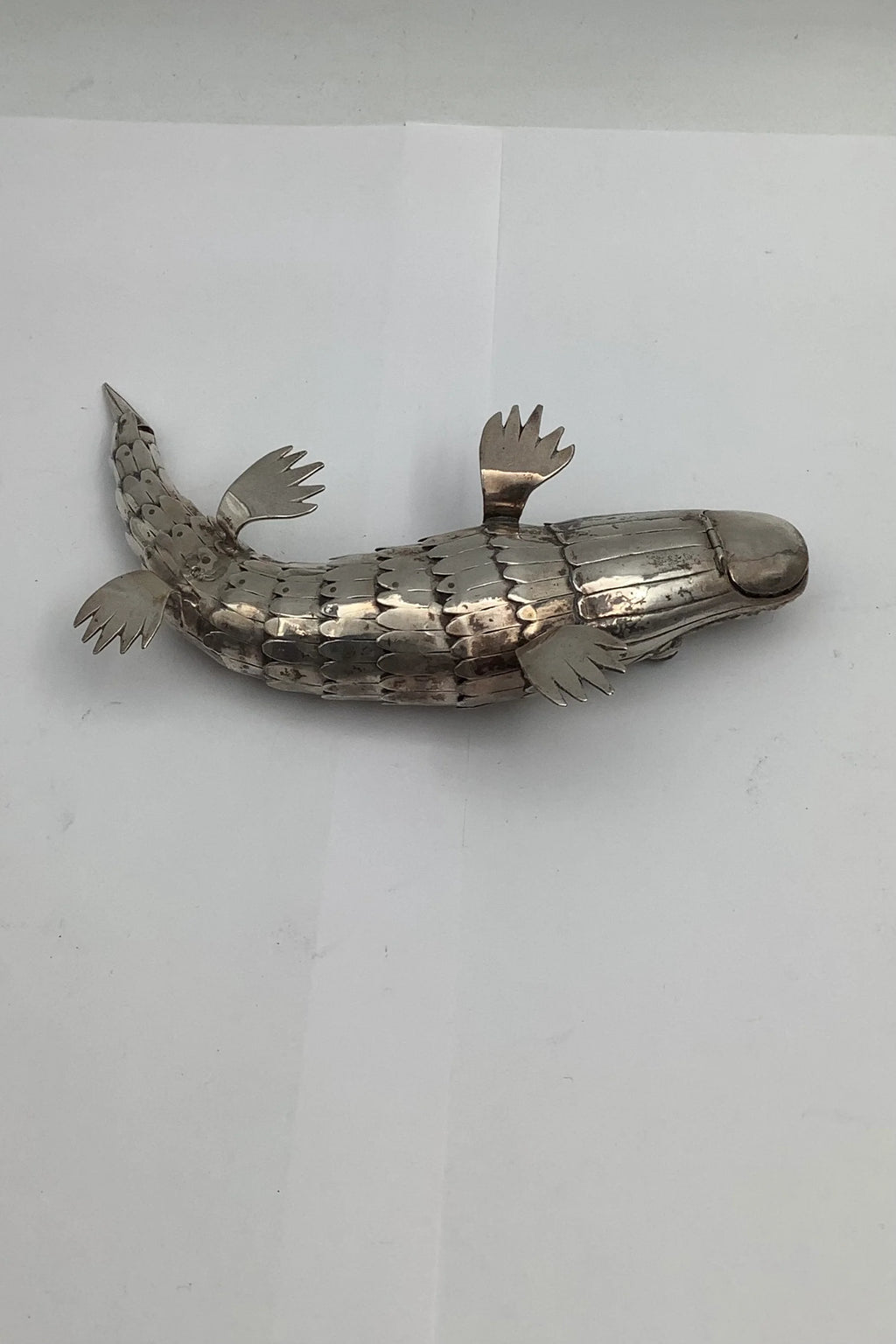 Alligator / Crocodile in silver with movable joints. Red flux eyes.