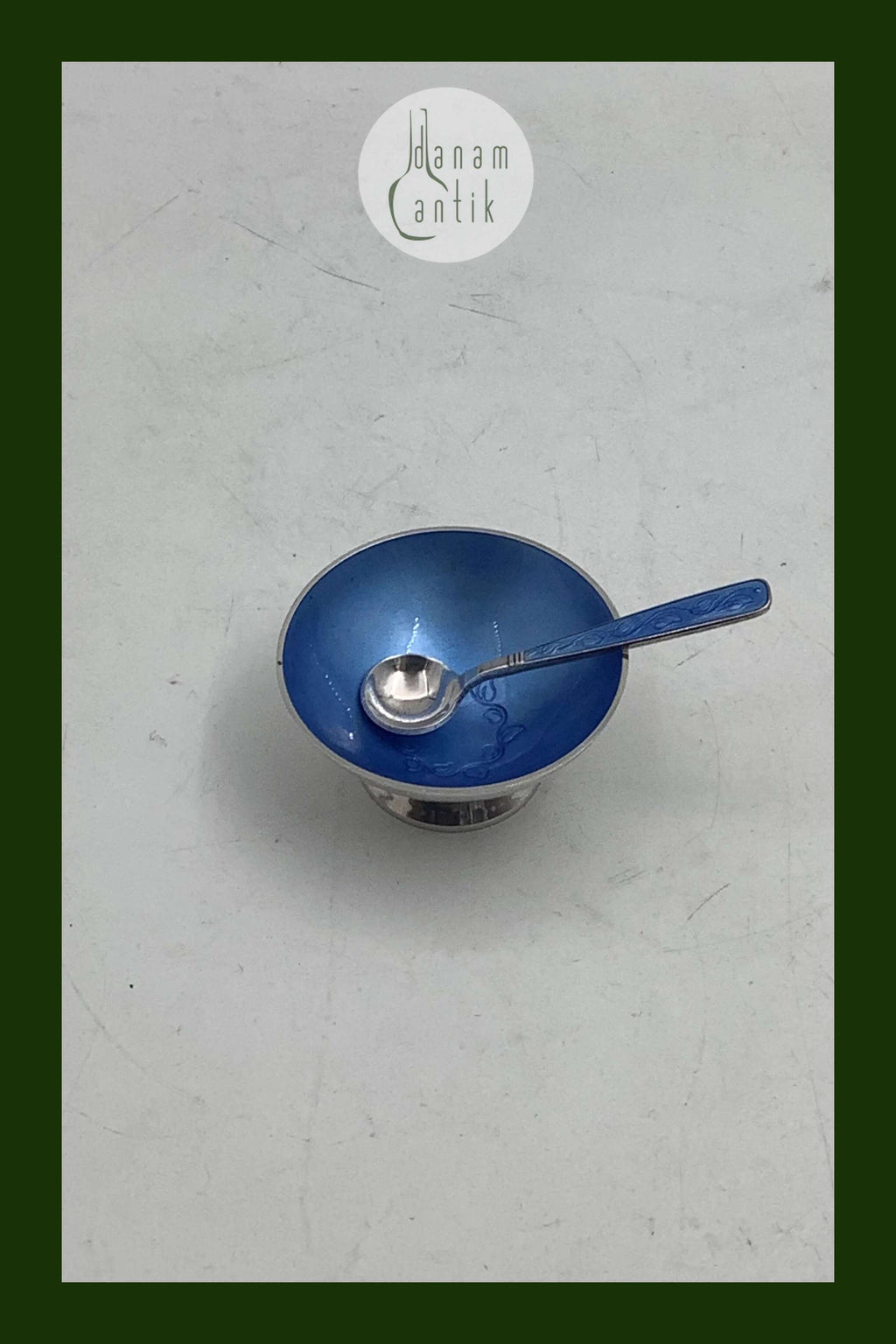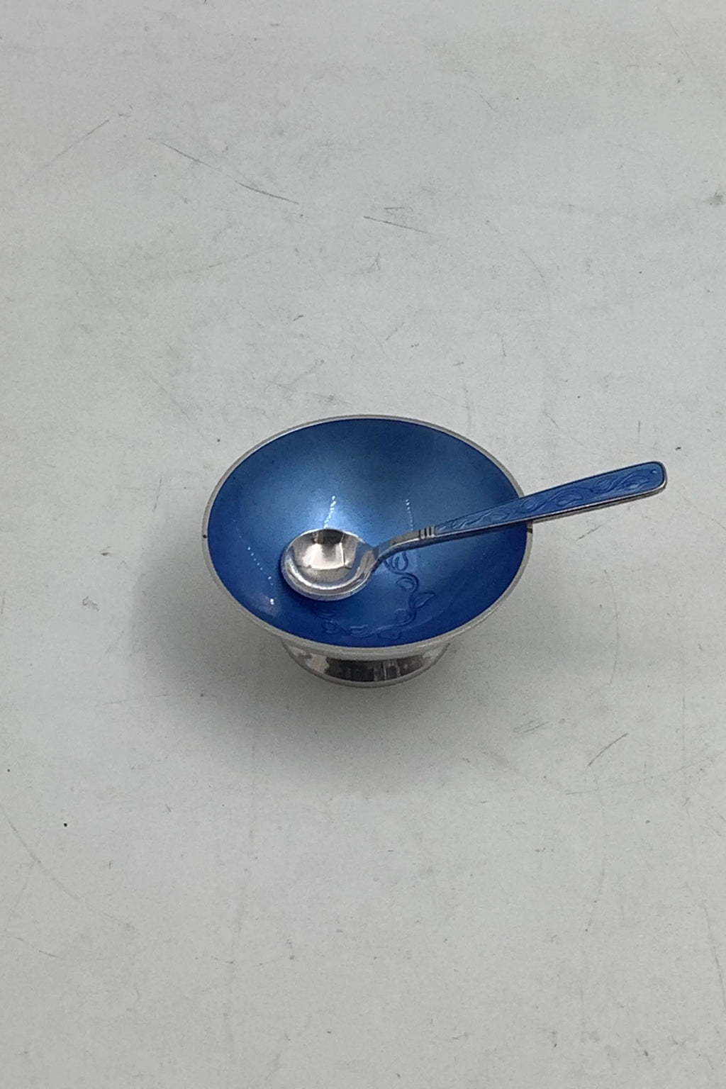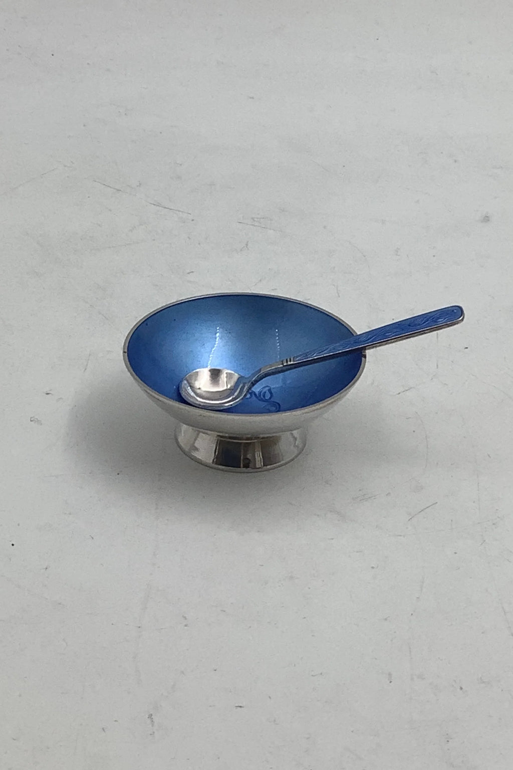 Volmer Bahner Sterling Silver Salt Cellar with Blue Enamel and Spoon