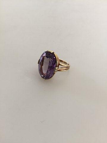 14K Gold Ring Marked JF Ornamented with Amathyst Stone