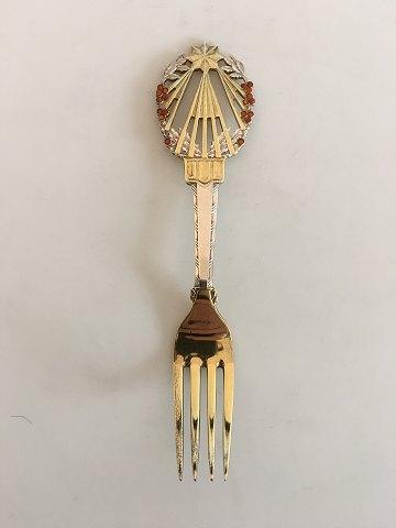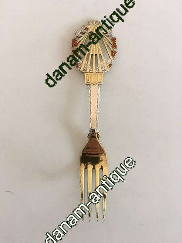 Anton Michelsen Christmas Fork 1922 Gilded Sterling Silver with Enamel.
