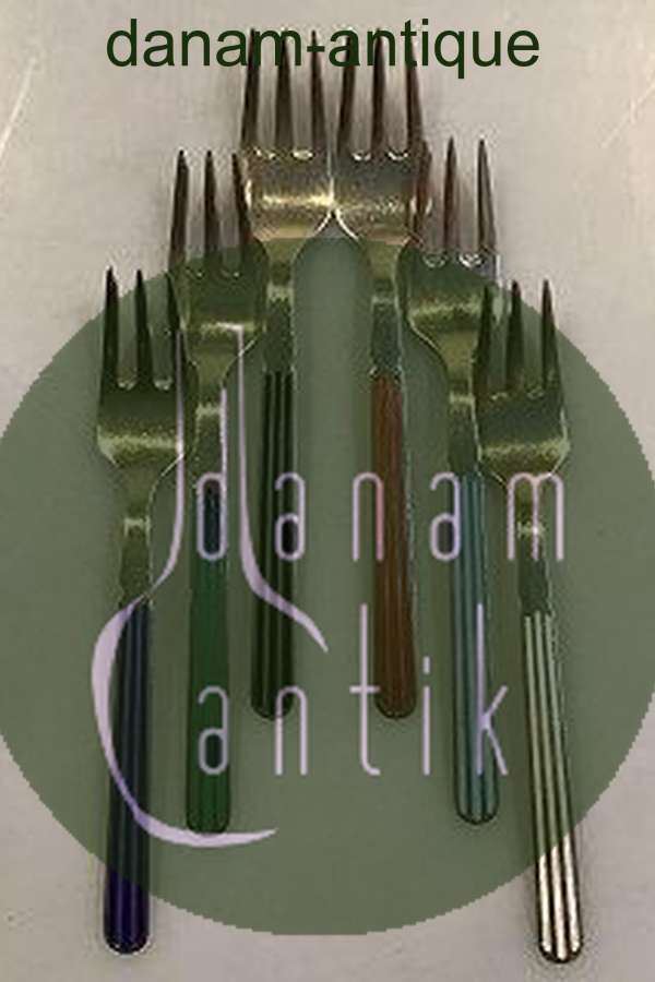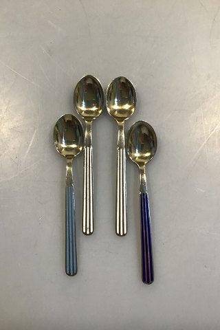 A Michelsen Sterling Silver 4 Coffee Spoons and 6 Cake Forks gilded with patial enamel Coffee Spoons 10.2 cm/4.01" and Cake Forks 12.7 cm/5" Combined Weight 160 gr/5.65 oz