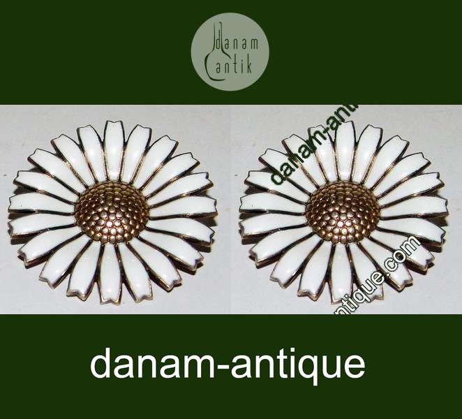 Anton Michelsen Large Marguerite Brooch in Sterling Silver and Enamel. Measures 4,3cm and is in perfect condition.