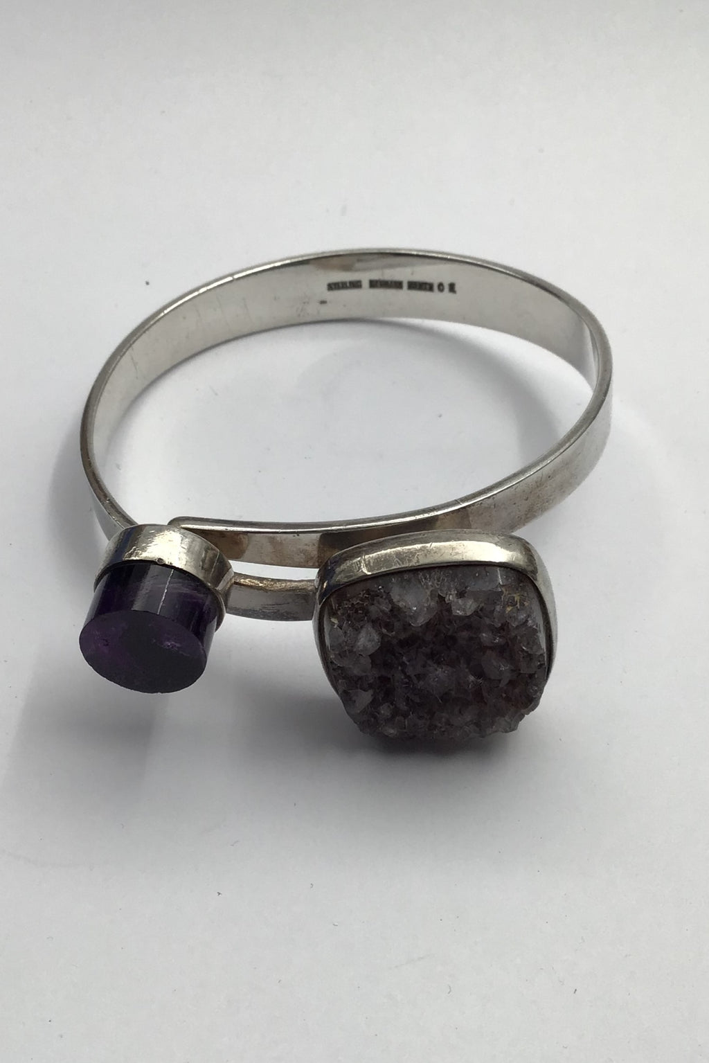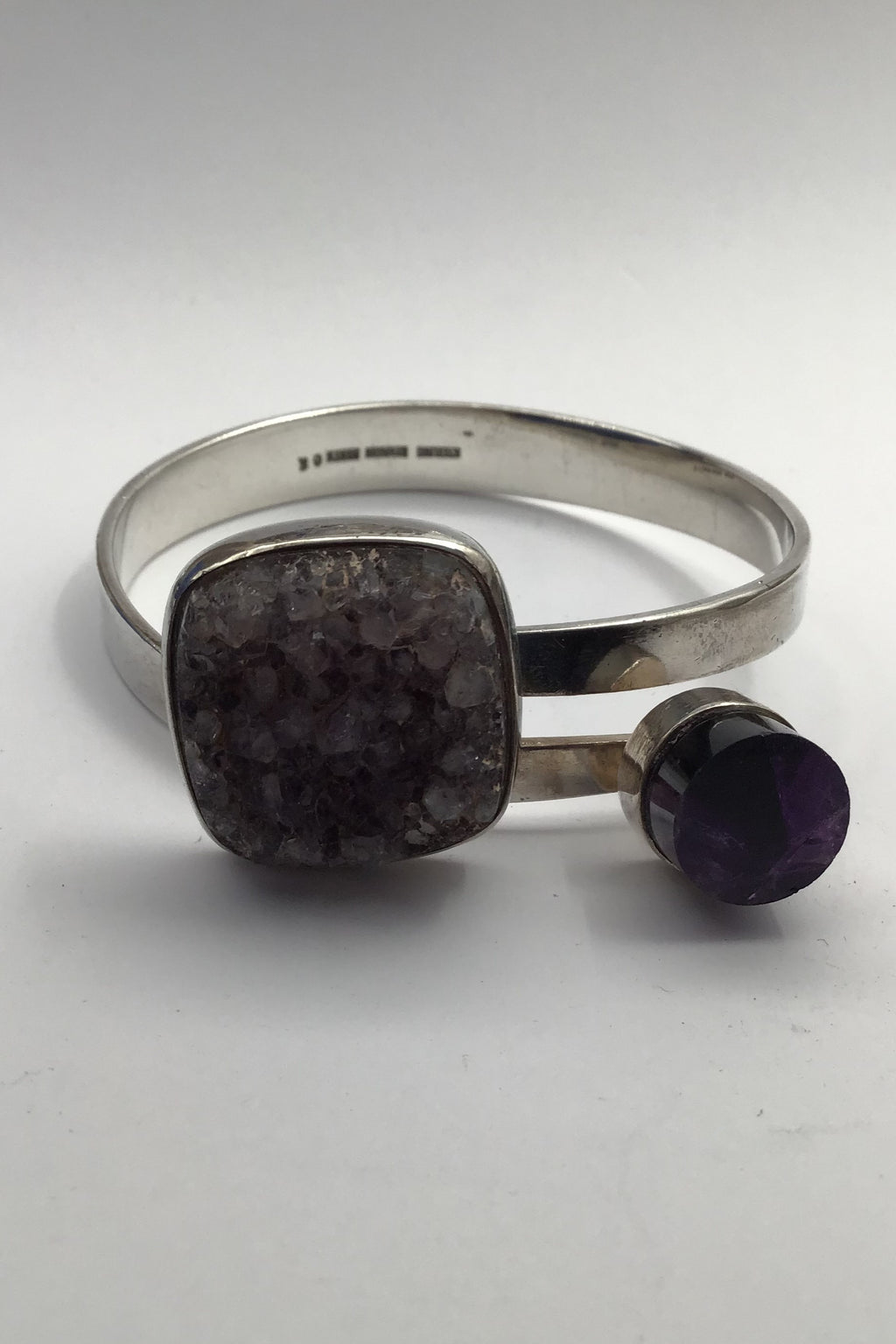 Bent Knudsen Sterling Silver Bangle (Amethyst) Measures Diam Inside 6.5 cm (2.55 inch) Weight 60.60 gr (2.14 oz) (Light signs of wear)