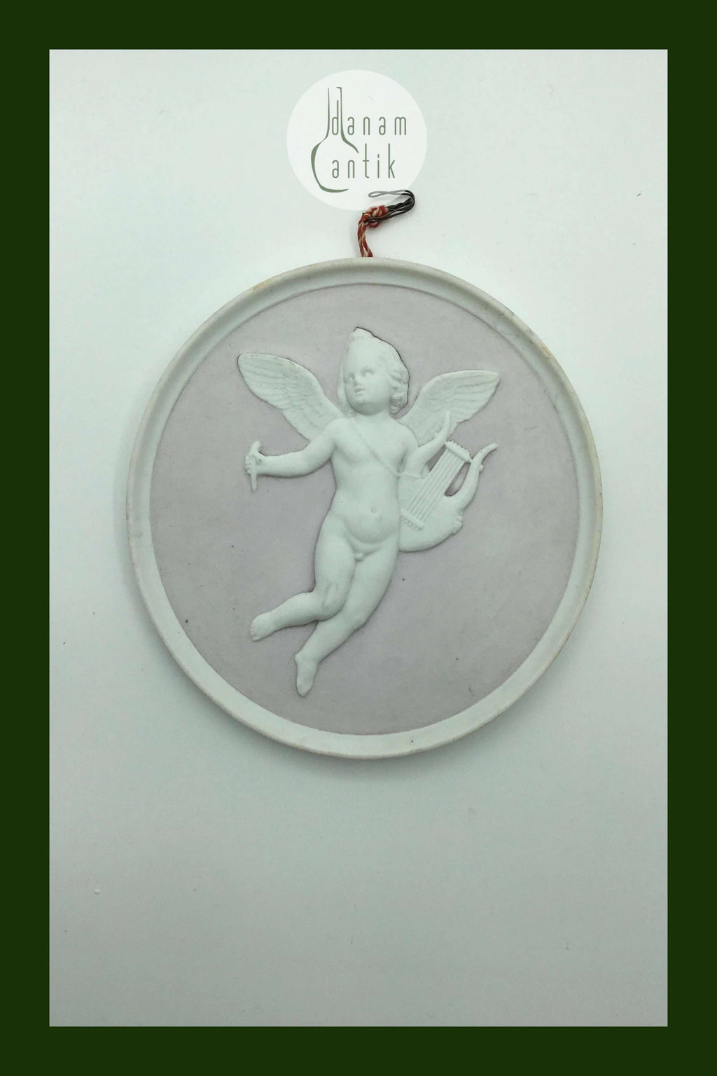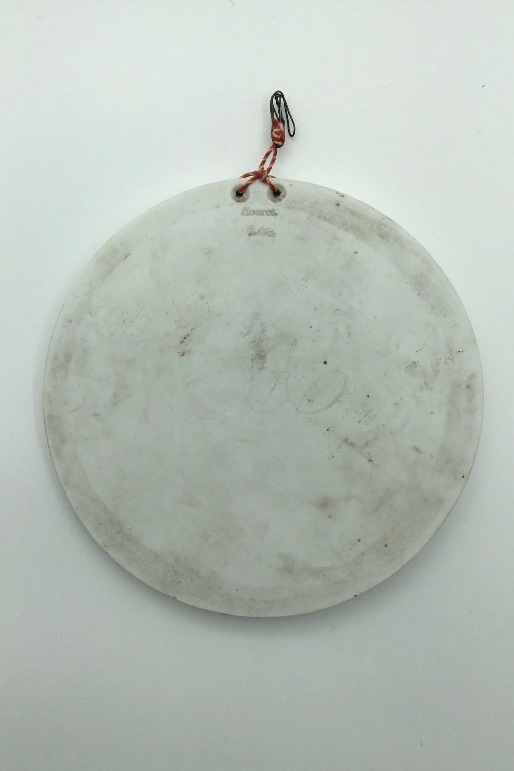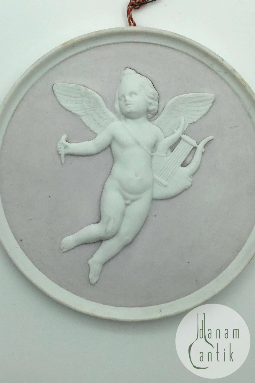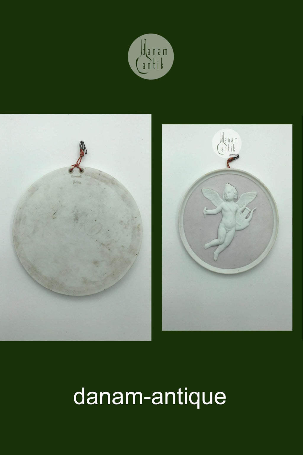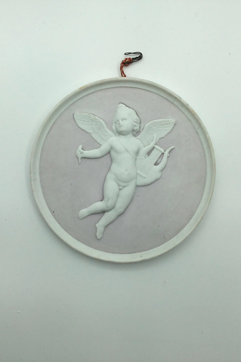 Bing and Grondahl Biscuit Plate "Poesiens Genius" with pink colored background. No 104. After copy of original from 1838 by Pietro Galli after drawing by Thorvaldsen. Measures 14,5cm (5.70 inch).