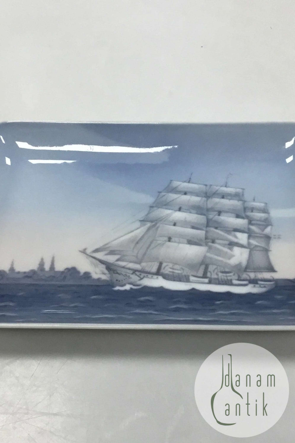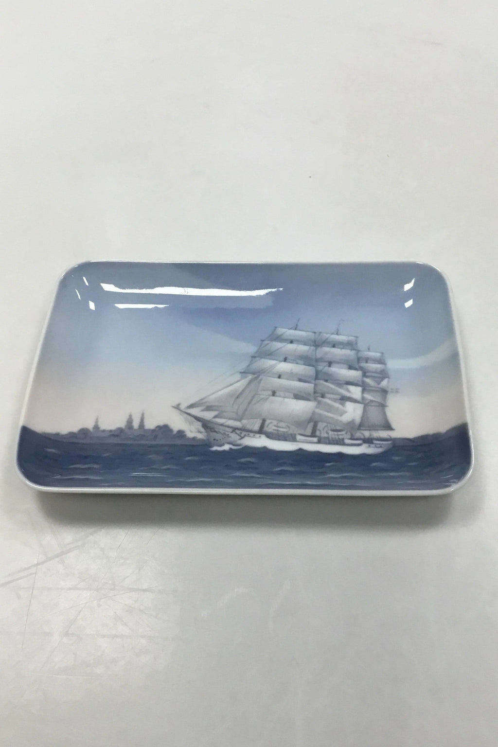 Bing & Grondahl Bowl 455 Series Aage Hempel 1956 No 597. Measures 13 cm x 19.5 cm (5 1/8 in. X 7 43/64 in.)
