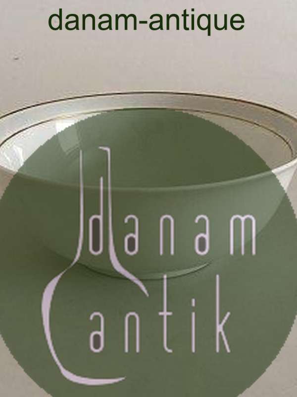 Bing & Grondahl Tiber Bowl No 44. 6.5 cm H (2 9/16"). 17.5 cm dia (6 57/64"). White with Light Grey Border and Gold Edge.