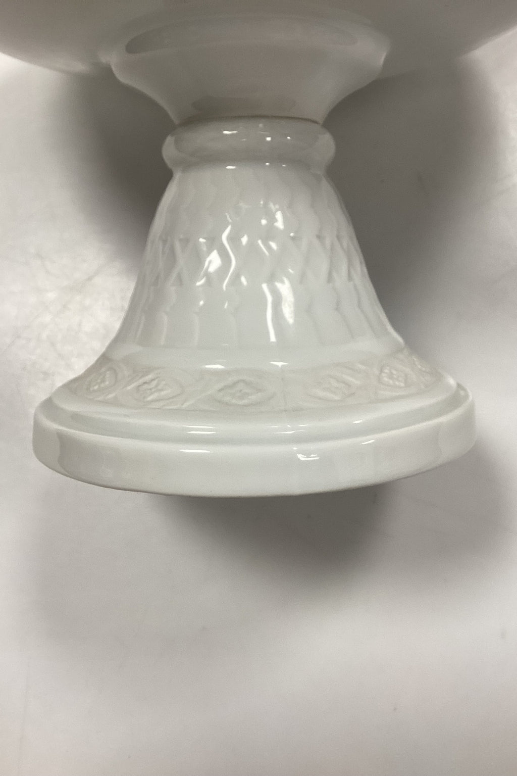 Royal Copenhagen White Fan Bowl/Opsatsats No. 11549. Measures 16 cm x 23 cm / 6,29 in. x 9,05 in. 2. Assortment. Joint in the foot can be seen slightly under the glaze, see photo.
