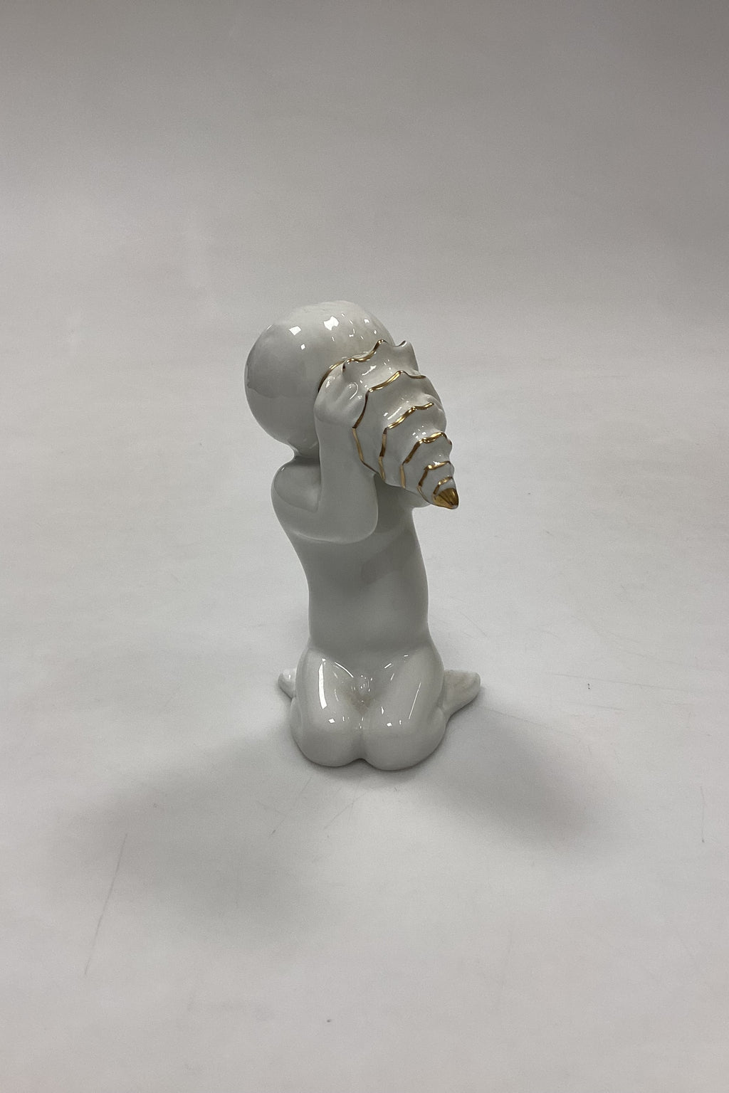 Bing and Grondahl Figurine - Sea Child with Conch No. 2264. Blanc de Chine porcelain with gold. Designed by Ebbe Sadolin/Svend Jespersen.