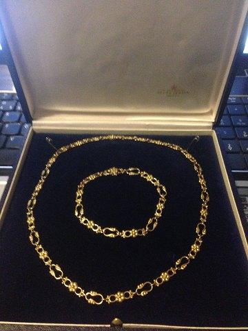 Georg Jensen 18K Gold Bracelet and Necklace No 85. Measures 43,5cm and 19,5cm. Is in perfect condition. Comes with the original Georg Jensen box.