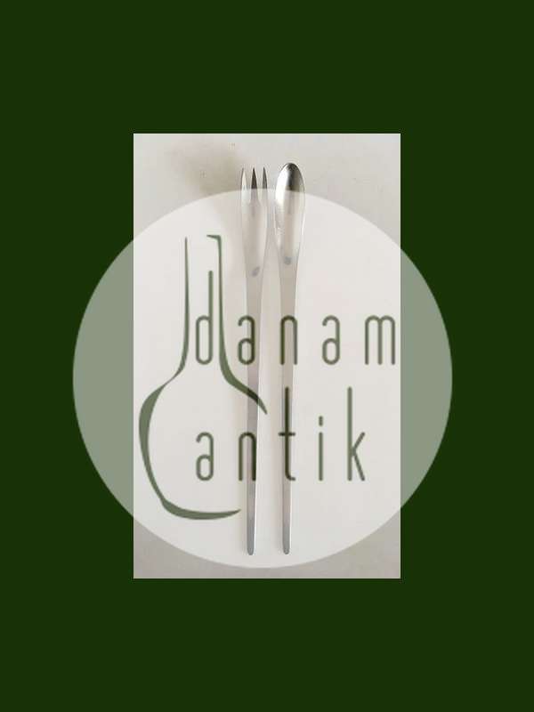 Georg Jensen Arne Jacobsen Mirror Salad Serving Set in Stainless Steel. Both fork and spoon measures 31.5 cm L (12 13/32"). In great condition.