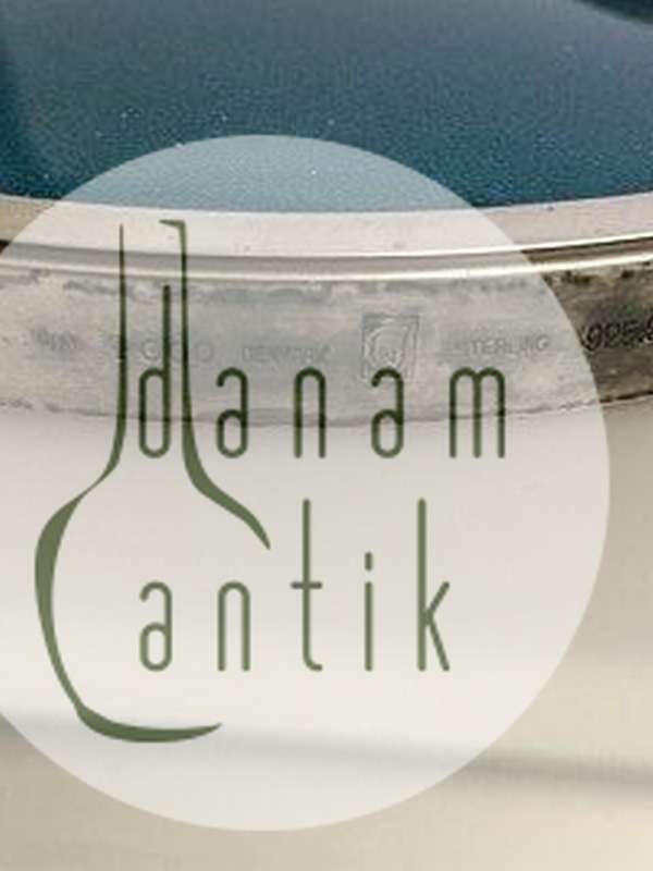 Georg Jensen Brushes and Mirror No 4000 in Sterling Silver and Porcelain designed by Harald Nielsen