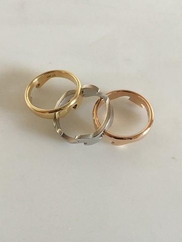 Georg Jensen Fusion Ring by Nina Koppel. In 18 K gold, white gold, and rose gold. Weighs 18 grams (0.65 oz). Size 57. From after 1945.