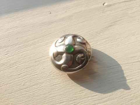 Georg Jensen Silver brooch with Green stone No 56 from 1908-1914. Measures 2,8cm and is in good condition.