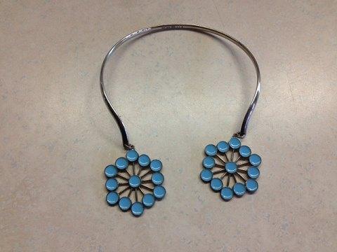 Georg Jensen Sterling Silver Neckring with Enamel by Astrid Fog No 238.
