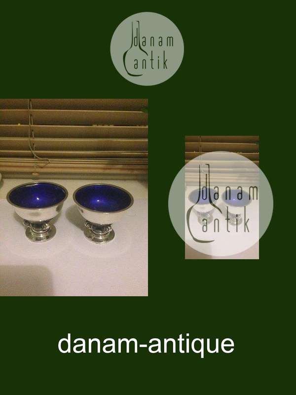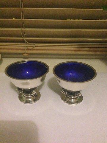 Georg Jensen Sterling Silver Acorn Salt Dish No 741. Måler 5,5cm x 5,5cm. Has a few chips on the enamal.
